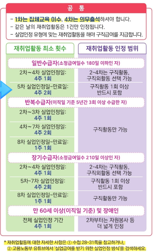< 2023년 최신 실업급여 1~4차 실업인정방법 간단 정리 >